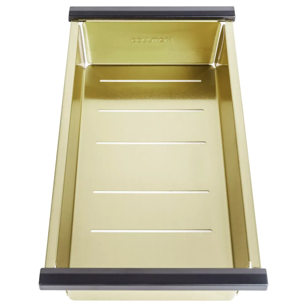 Коландеры Paulmark изготовлены из нержавеющей стали ASIS 304, устойчивы к перепадам температур и к нагрузке. Используются для мытья и размораживания продуктов. Устанавливаются на бортики мойки и в специальные ступеньки моек серии PRO. Размер отверстий в донной части не позволит выпасть даже мелким ягодам и в то же время не препятствует свободному стоку воды. Глубина коландера - 6 см.