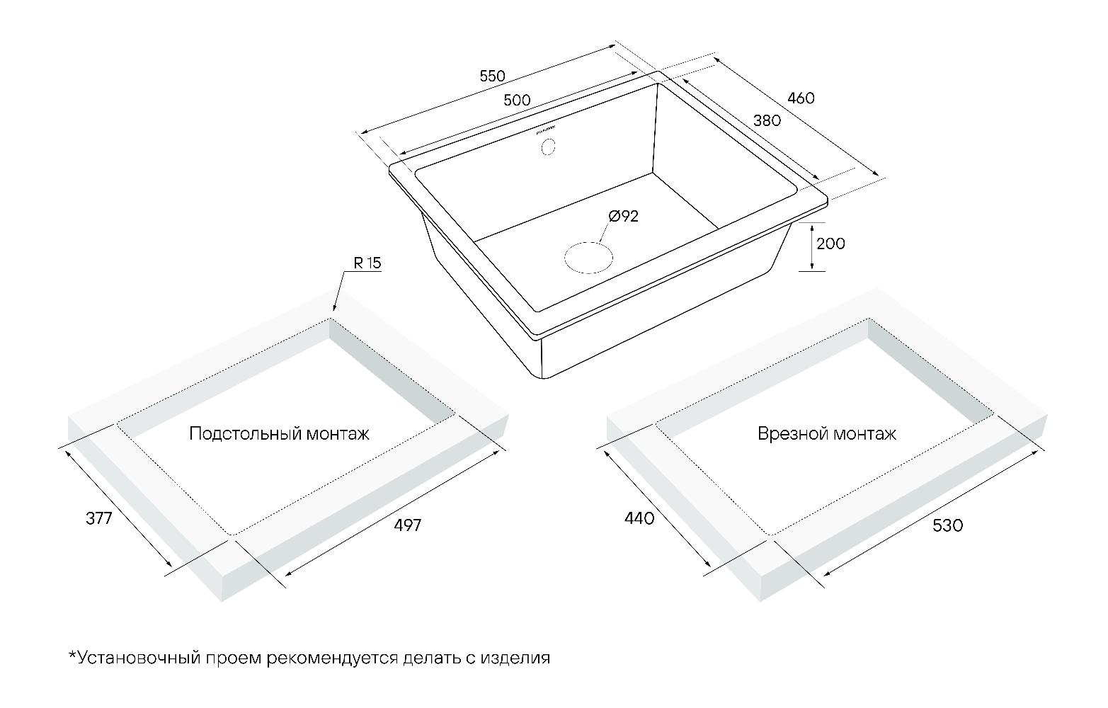 - Комплект крепежей для подстольного монтажа; - Отводная арматура (слив-перелив); - S-образный телескопический сифон с подключением посудомоечной машины (ПММ); - Декоративная накладка на перелив.