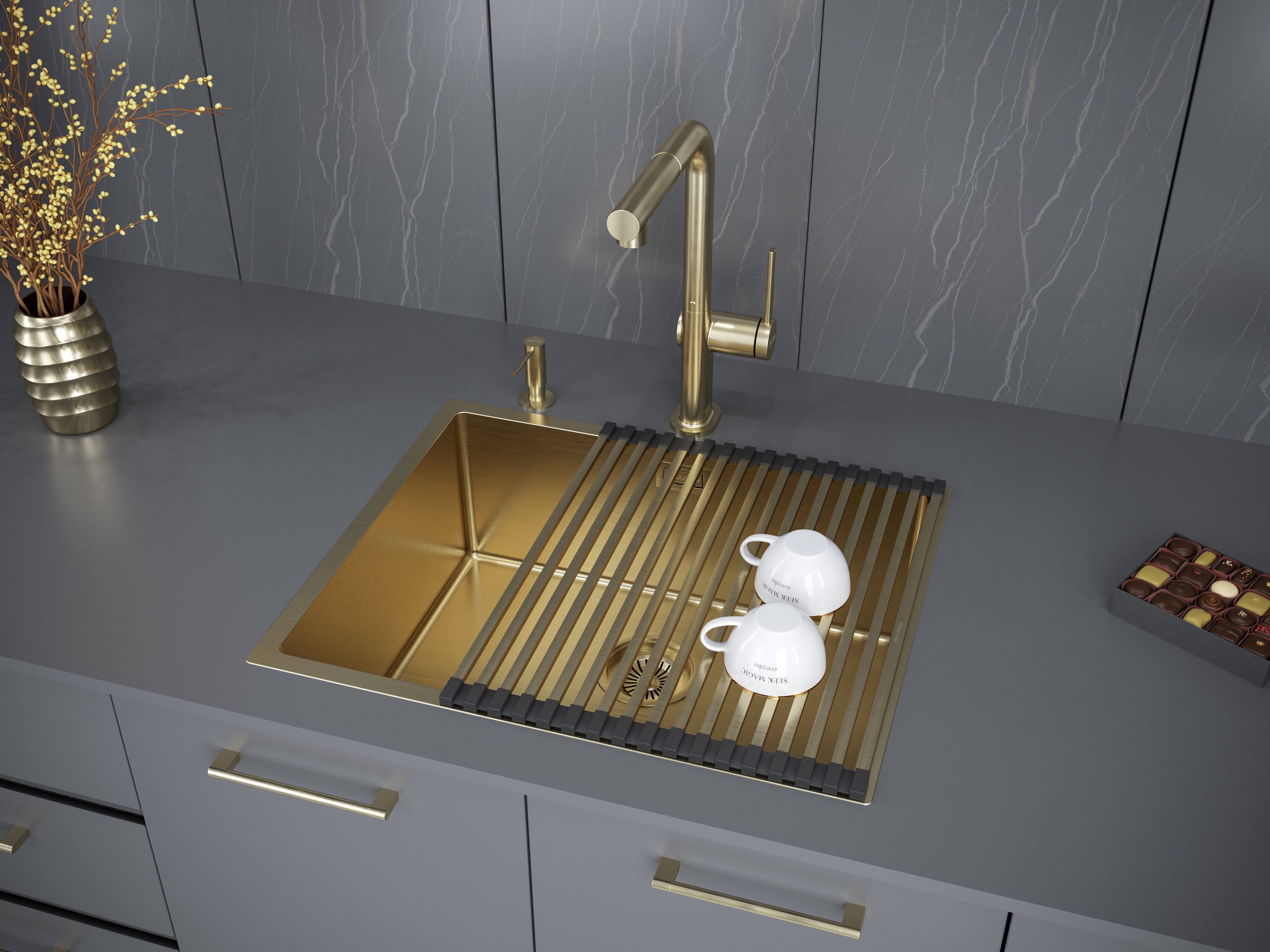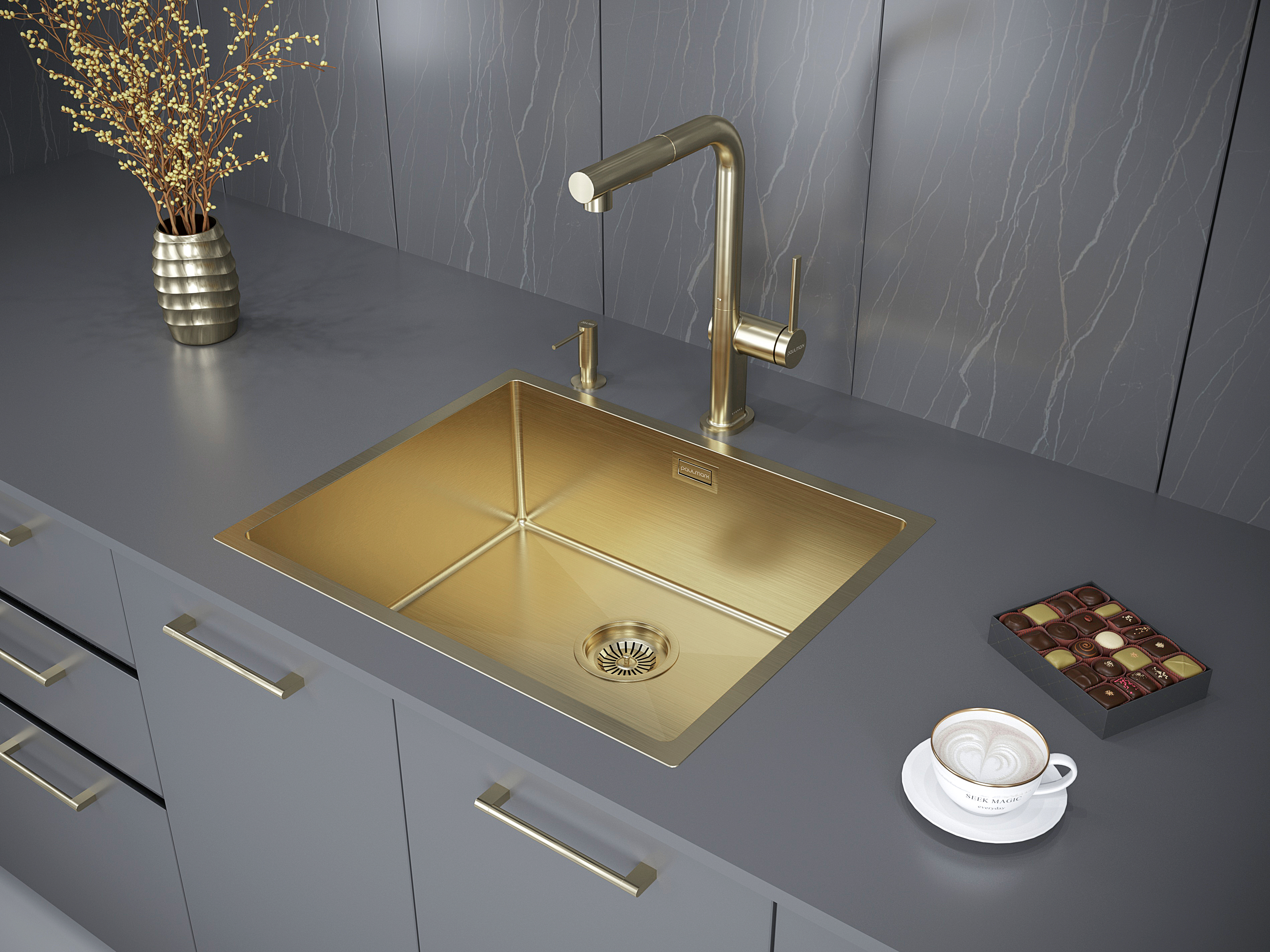 PVD покрытие моек Paulmark в цветах воронёная сталь / брашированное золото (GM / BG) является экологически чистым. Особый метод напыления покрытия путём прямой конденсации пара наносимого материала позволяет поверхности мойки быть особенно устойчивой к появлению царапин и истиранию. Такое покрытие является защитным слоем, оно чрезвычайно плотно и равномерно прилегает к основе, не содержит микротрещин.
